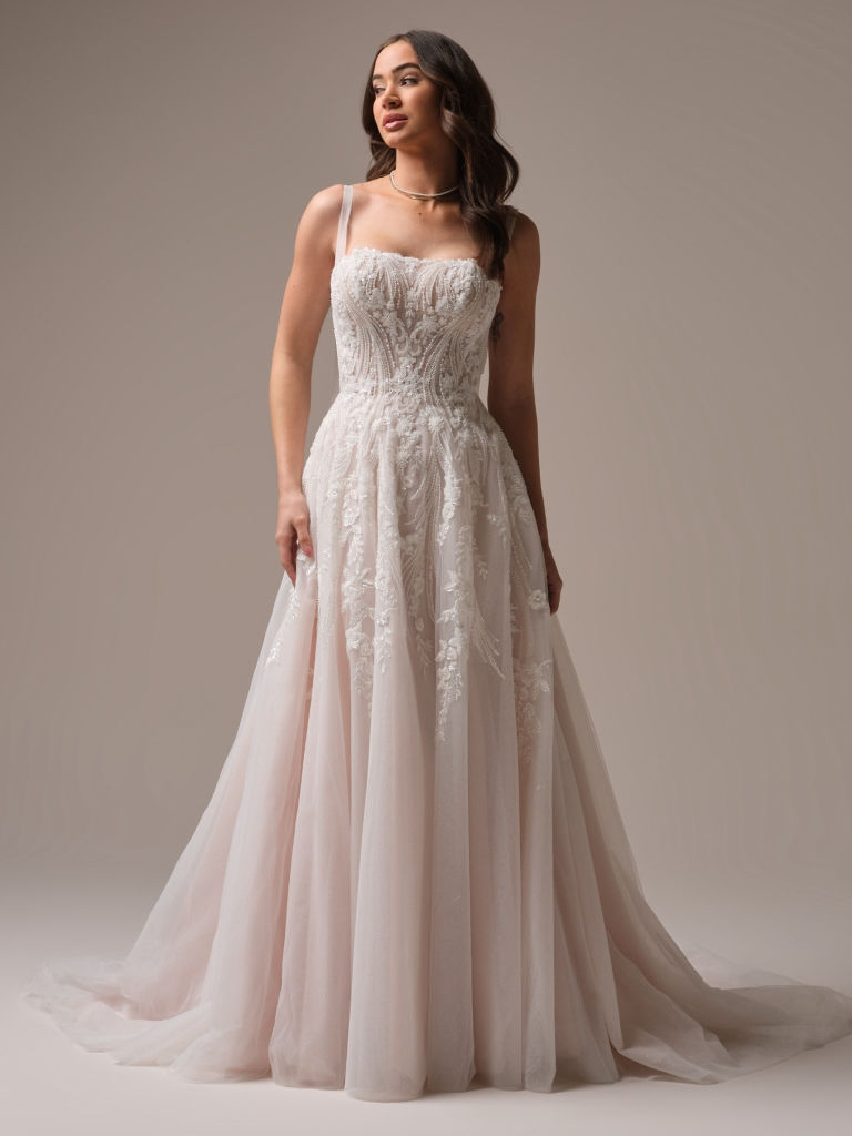 Delicate square neck beaded A-line wedding gown