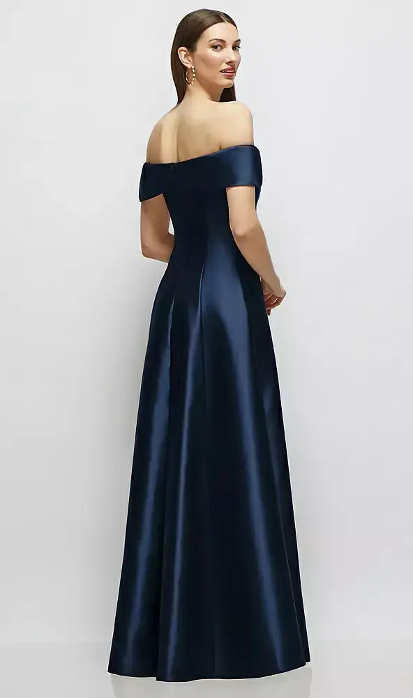 Make a timeless impression in the Audra (D862) by Alfred Sung, an off-the-shoulder satin gown designed to captivate.