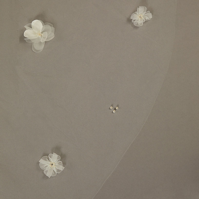 The En Vogue Veil - V2492RC showcases delicate English tulle adorned with scattered 3D floral appliqués and subtle bead accents.