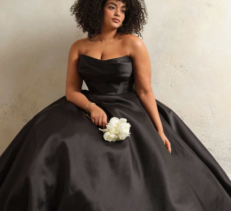 - Extend the train for added drama (up to 12 in/30 cm) or remove the train for a more casual look through special request