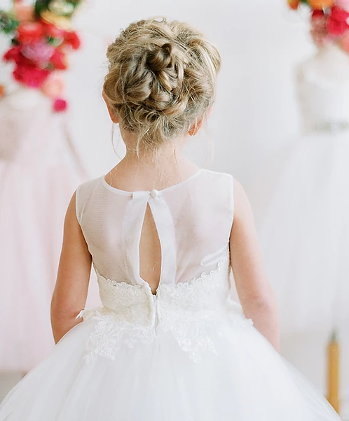 Description: Sheer top with lace applique and tulle skirt Available in Ivory and White