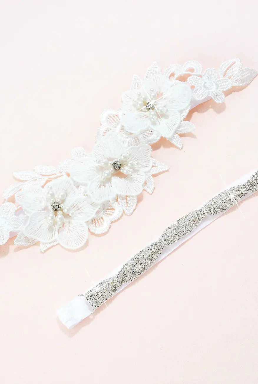 Fleur Crystal and Lace Garter Set White F27-C17 - Heirloom Bridal