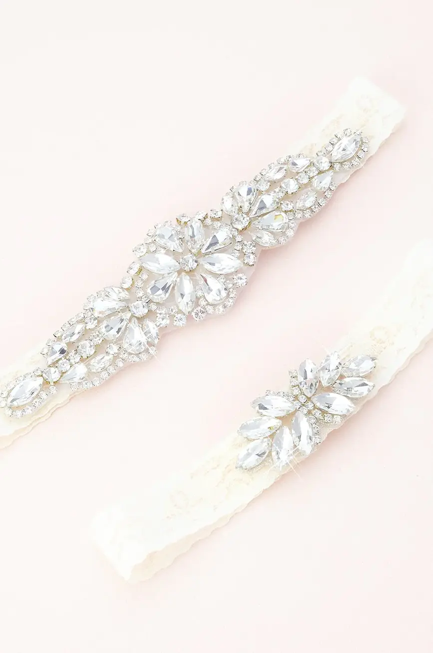 Freya/Faye Crystal and Lace Garter Set C20S-C21S - Heirloom Bridal