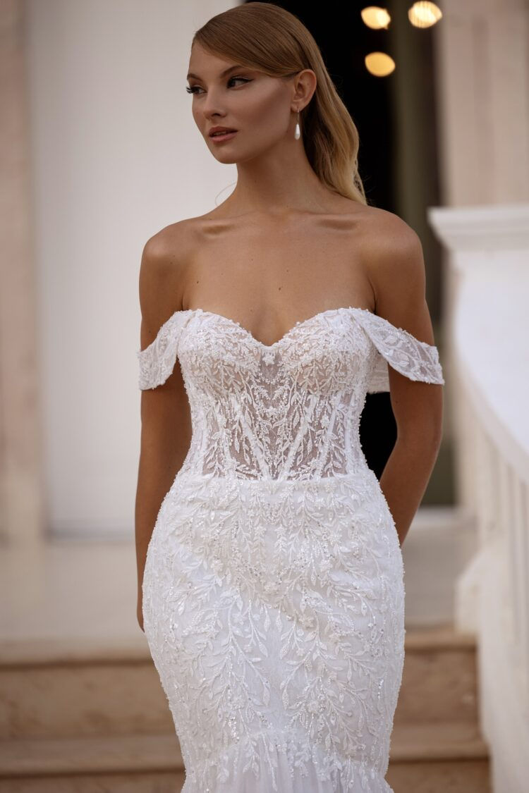 All dresses/veils are shipped from the designer to our store. After they are received, they are shipped to customers.