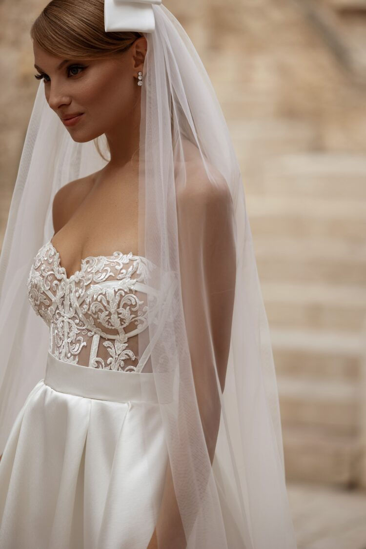 All dresses/veils are shipped from the designer to our store. After they are received, they are shipped to customers.