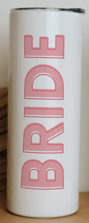 This metal 20 oz tumbler is perfect for the bride-to-be! Made with durable stainless steel, this tumbler will keep your drinks cold for hours on end. Its dishwasher safe feature ensures easy cleaning, while the included lid and metal straw provide convenience and style.
