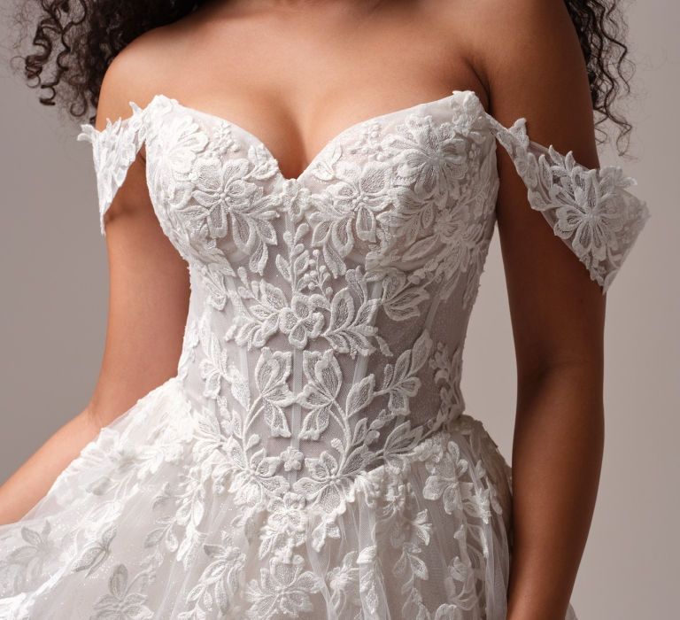 - Detachable off-the-shoulder illusion lace cap-sleeves sold separately