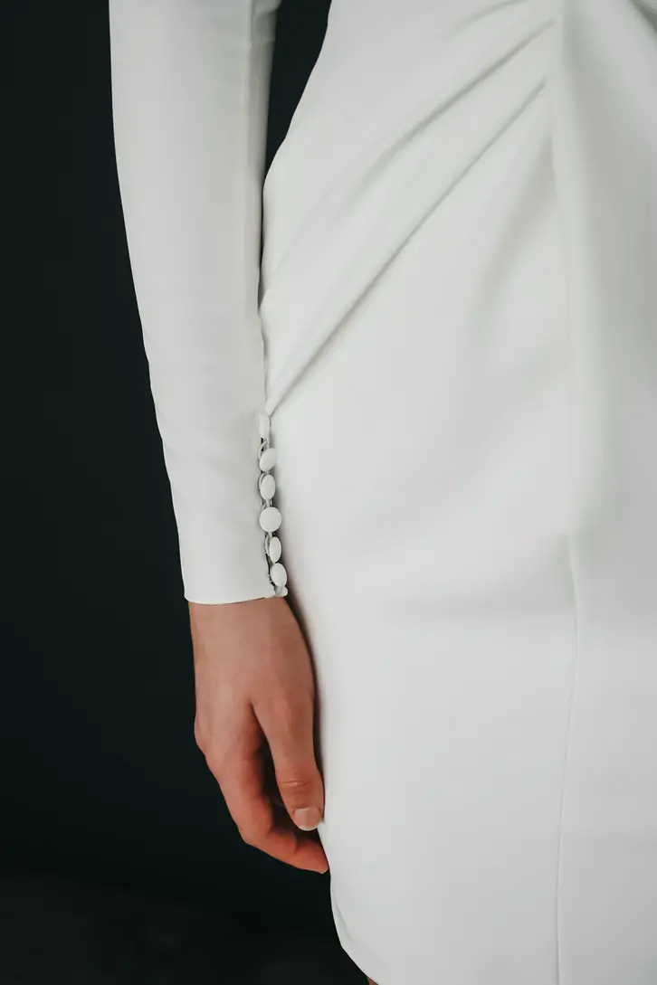 Ideal for a bride seeking a contemporary style with classic elements, the River gown's shorter length brings a fresh and youthful appeal. It embodies versatility and confidence, perfect for ceremonies that call for an effortlessly chic statement.