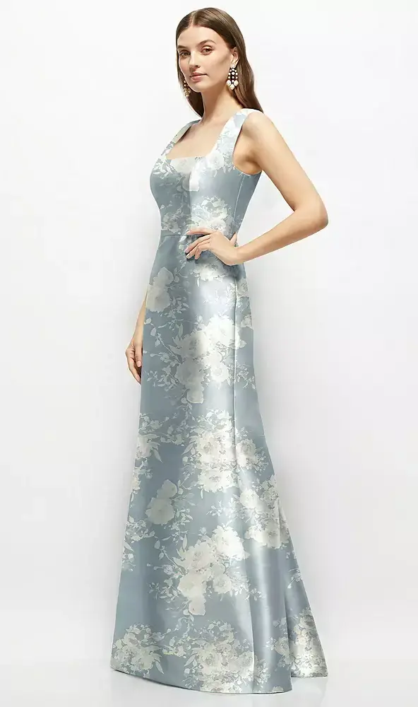Asymmetrical and chic, this floor-length floral maxi dress is made of a smooth satin twill and offers a sophisticated touch for special occasions. With a revealing one-shoulder bodice with a regal oversized bow detail, this floral satin twill maxi dress flows into a flared trumpet skirt.