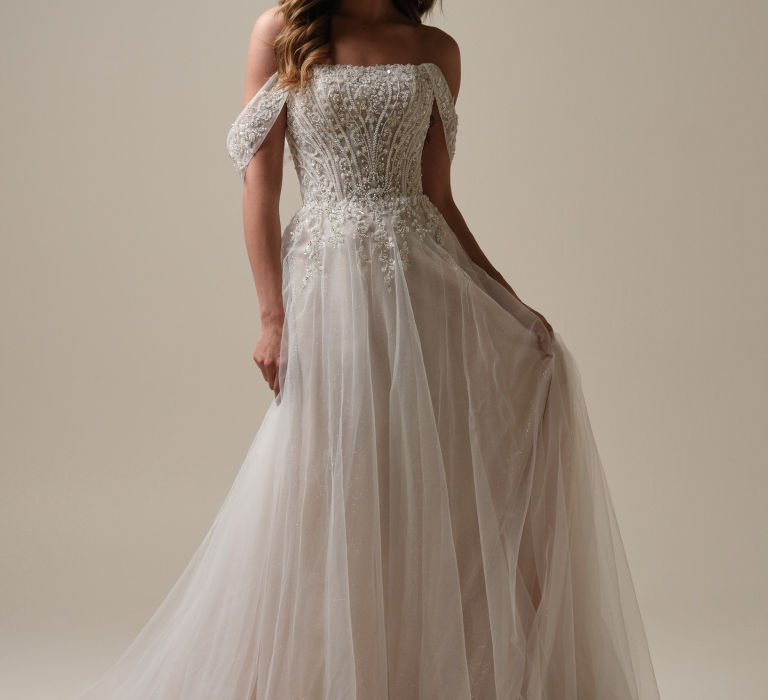 - Detachable off-the-shoulder beaded and sequin embellished cap-sleeves