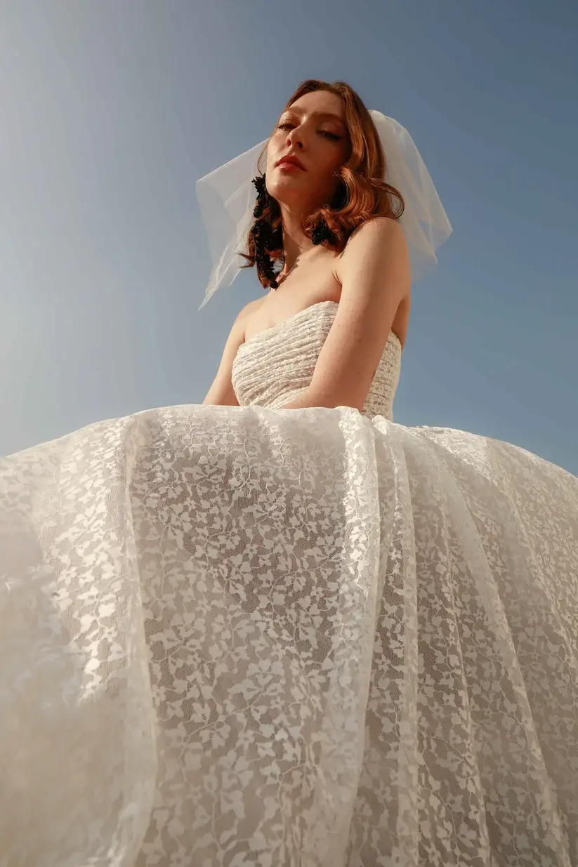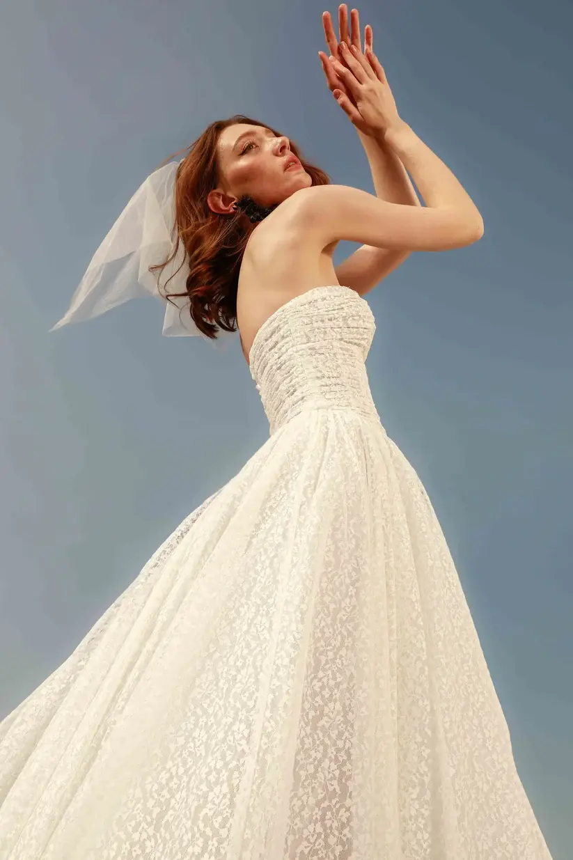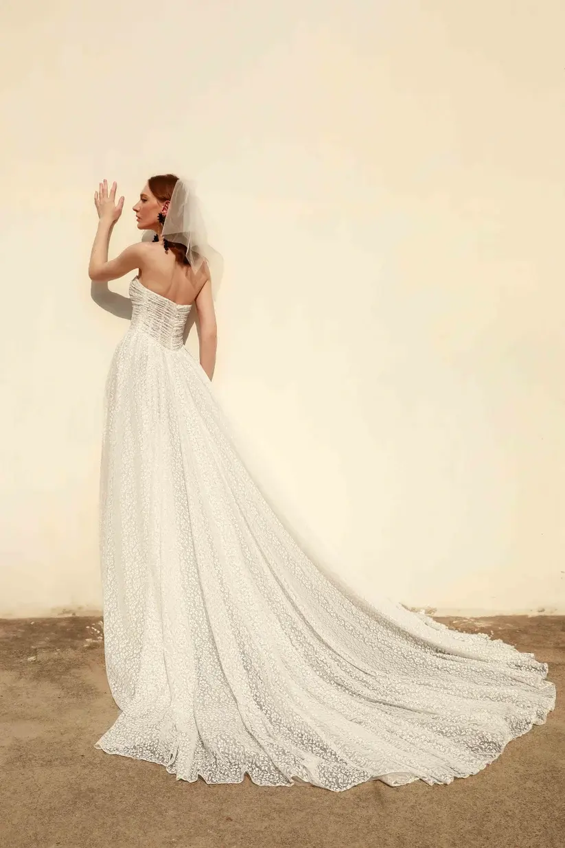 Description: The simple design of this gown is perfect for the urban bride who wants to make a statement without being too over-the-top. The clean lines and minimalist details give this dress a timeless and sophisticated feel, making it the perfect choice for a city wedding.